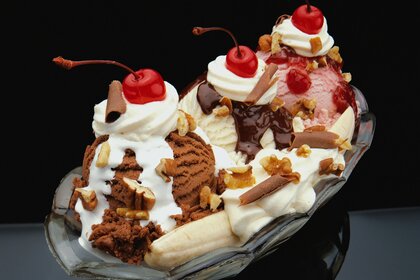 फल और क्रीम के साथ स्वादिष्ट आइसक्रीम