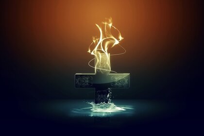 आग पर पानी में डूबता हुआ एक क्रॉस
