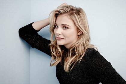 एक काले रंग की पोशाक में च्लोए मोरेट्ज़