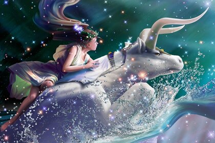 मकर राशि पर बैठी लड़की का त्योहार चित्रण