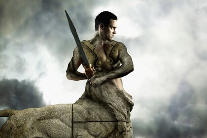 सींग के साथ एक पौराणिक चरित्र की एक मूर्ति, जिसने अपना सिर आकाश में उठाया और चिल्लायासींग के साथ एक पौराणिक चरित्र की एक मूर्ति, जिसने अपना सिर आकाश में उठाया और चिल्लाया