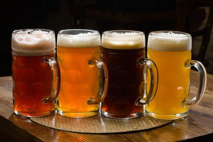 विभिन्न प्रकार की बीयर के साथ चार बीयर के गिलास