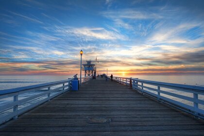 एक नाव और प्रस्थान जहाजों के साथ अमेरिकी घाट