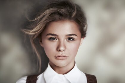 एक काले रंग की पोशाक में च्लोए मोरेट्ज़