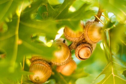 एक शाखा पर पका हुआ एकोर्न