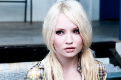 एक प्लेड शर्ट में सुनहरे बालों वाली लड़की
