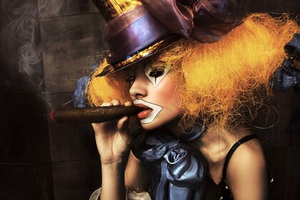 सिगार के साथ जोकर मेकअप में एक महिला