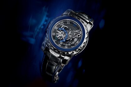 डार्क बैकग्राउंड पर क्रोम प्लेटेड कलाई घड़ी