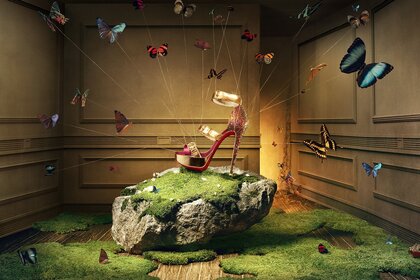 तितलियों से घिरे वस्त्र जूते