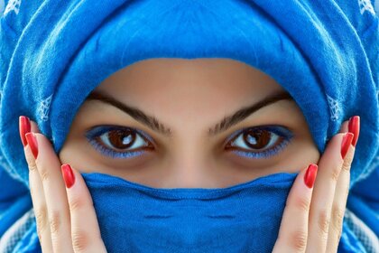 लड़की का चेहरा और खूबसूरती से चित्रित आँखें