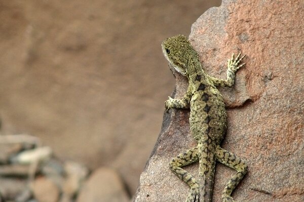 रेगिस्तान पत्थरों की पृष्ठभूमि पर छिपकली