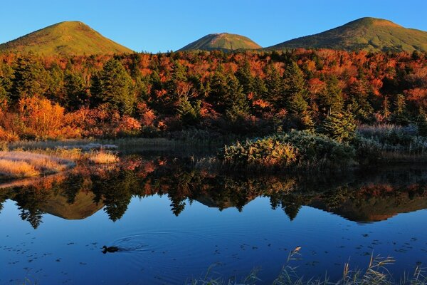 पानी से शरद ऋतु परिदृश्य। प्रकृति