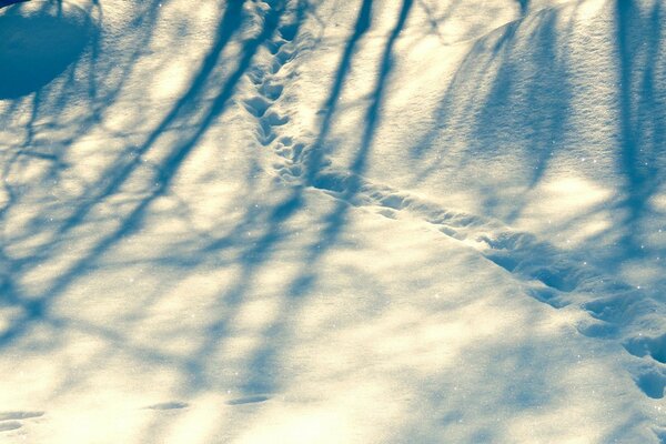 बर्फ में पैरों के निशान । ठंढा सर्दियों