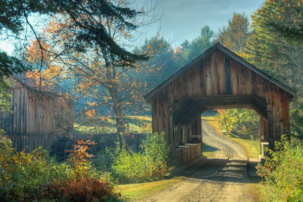 लकड़ी के खलिहान से गुजरने वाली गाँव की सड़क