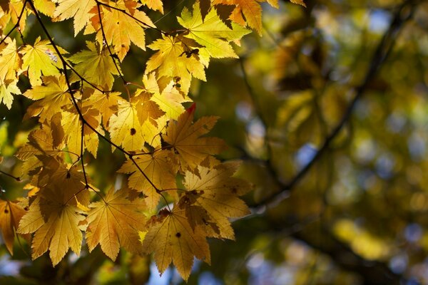 प्रकृति की पृष्ठभूमि पर पक्षियों के साथ शरद ऋतु का पेड़