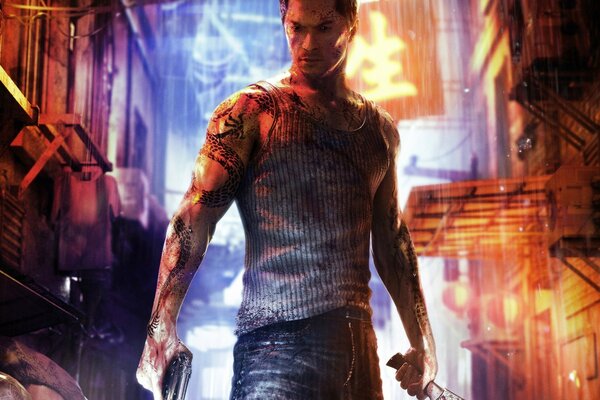 बंदूक और चाकू के साथ एक वयस्क व्यक्ति