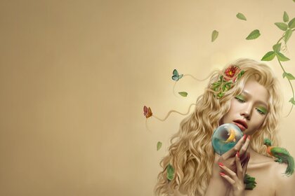एक शेर के साथ एक लड़की की एक सुंदर तस्वीर