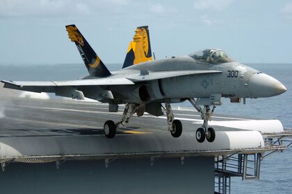 एक विमान वाहक पर रनवे से एक लड़ाकू का प्रस्थान