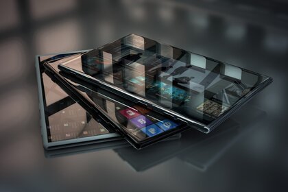मेज पर उच्च तकनीक उपकरणों का ढेर