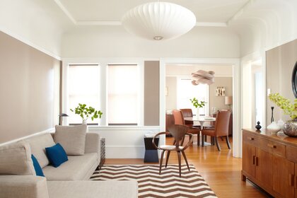 साधारण फर्नीचर के साथ आधुनिक लिविंग रूम