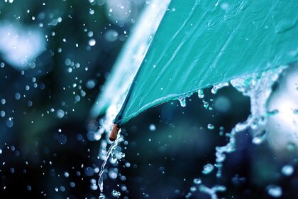 नीले छाता रात से बारिश भरी