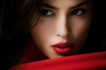 लड़की के होठों पर लाल रंग की लिपस्टिक