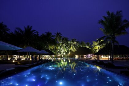 उष्णकटिबंधीय में समुद्र तट पर स्वर्ग होटल