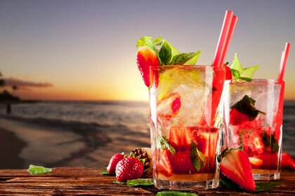 स्वादिष्ट उष्णकटिबंधीय स्ट्रॉबेरी पेय