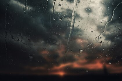 बारिश हो रही है और खिड़की के बाहर तूफान आ रहा है
