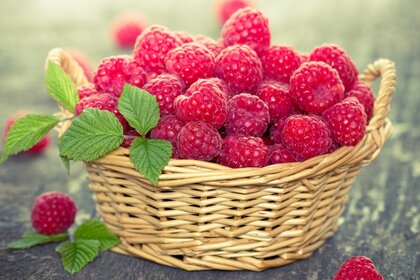 पके रसभरी के साथ टोकरी