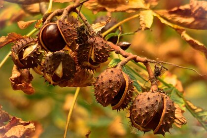 शरद ऋतु में, फल और नट्स पके हुए आईडी
