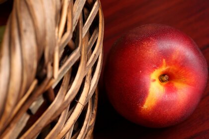 मेज पर टोकरी में रसदार लाल अमृत