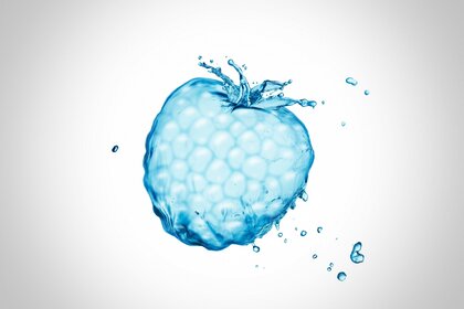 उड़ने वाले कणों के साथ पानी से असामान्य नीली स्ट्रॉबेरी