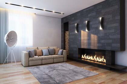 फायरप्लेस के साथ आधुनिक लिविंग रूम
