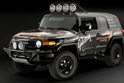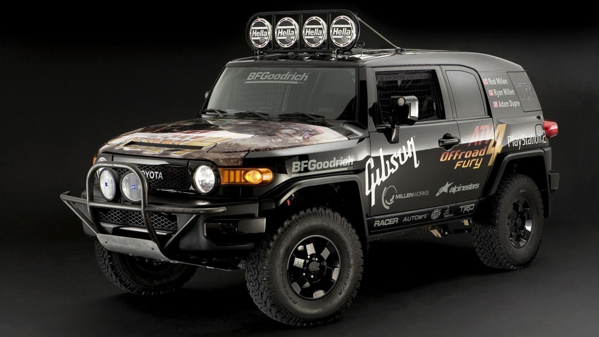 एक काले रंग की पृष्ठभूमि पर शक्तिशाली काले टोयोटा