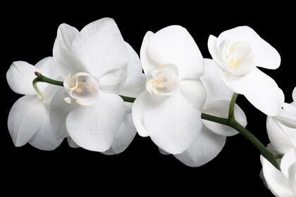 एक काले रंग की पृष्ठभूमि पर सफेद आर्किड फूल
