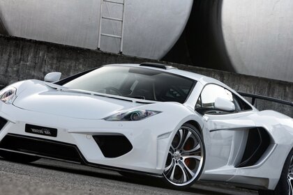एक ग्रे पृष्ठभूमि पर आधुनिक सफेद कार