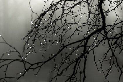 एक ग्रे पृष्ठभूमि पर एक नंगे पेड़ की शाखा