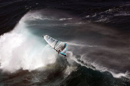 एक तूफान के दौरान एक बड़ी लहर पर एक नाव