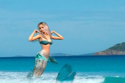 समुद्र में एक मत्स्यांगना एक लहर से बाहर कूदता है