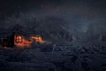 एक बर्फीली सड़क पर एक लंबी यात्रा