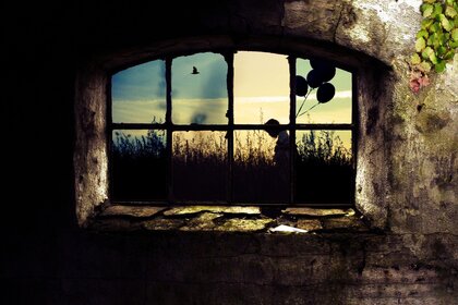वास्तुकला के एक परित्यक्त इमारत रहस्यों की खिड़की से देखें