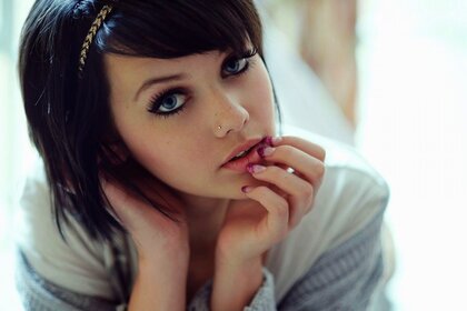 भेदी के साथ एक नीली आंखों श्यामला के पोर्ट्रेट