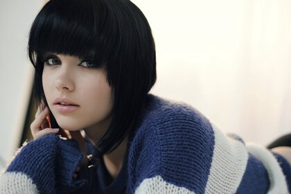 एक लंबे बालों वाली श्यामला कैमरे में स्पष्ट रूप से दिखती है