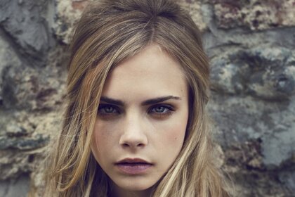 दीवार की पृष्ठभूमि पर सुंदर लड़की
