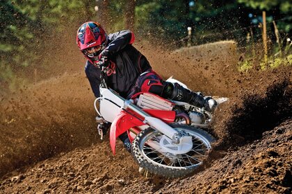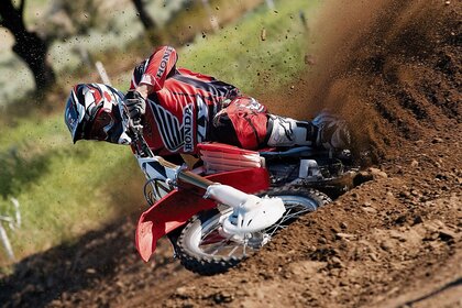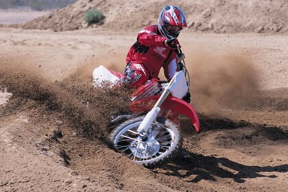 लाल मोटरसाइकिल जीत के लिए प्रयास करती है