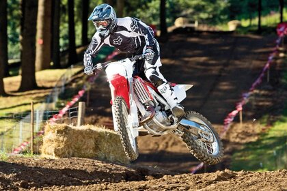 जमीन पर उड़ान में मोटो रेसर