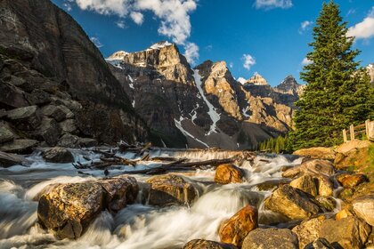 स्थानों और नदियों में बर्फ से ढके पहाड़ उनके माध्यम से चल रहे हैं
