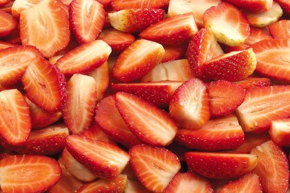 अनुभाग में पूरी पृष्ठभूमि में रसदार स्ट्रॉबेरी
