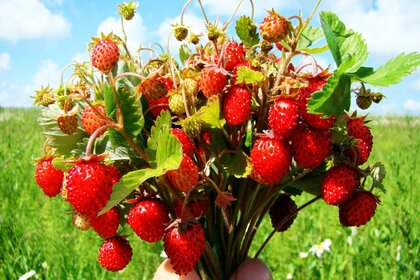 लाल रसदार स्ट्रॉबेरी का गुलदस्ता